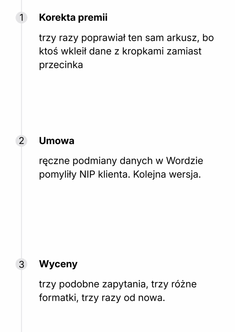 Dla Marcina nie do udźwignięcia. On chciał „tylko”, żeby wycena, umowa i zestawienie premii robiły się same.